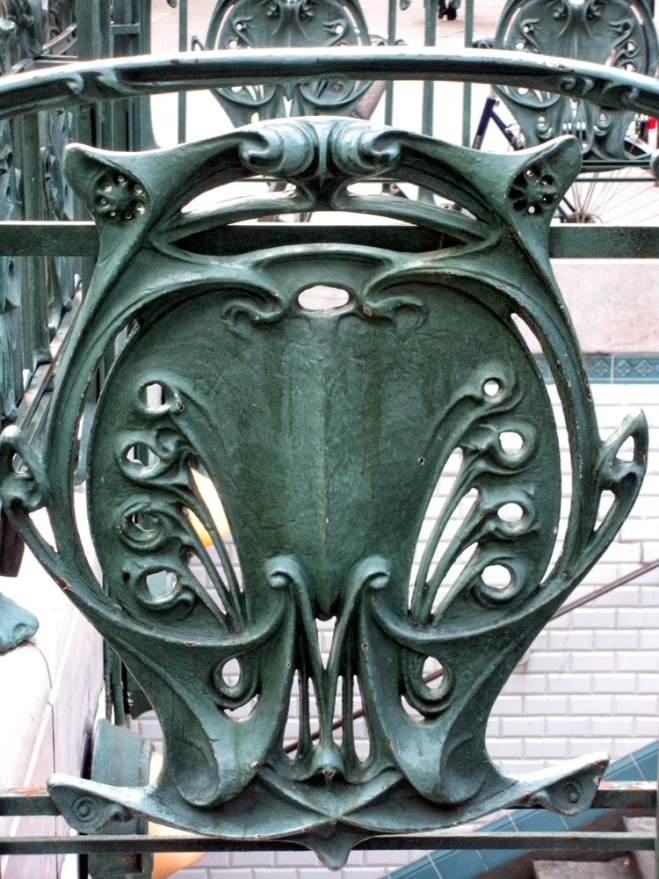 Passing through the Place Louis Lépine take a closer look at Guimard’s wonderful art nouveau entrance and lamps of the Cité metro station. The organic shapes are typical of the Art Nouveau curved style.