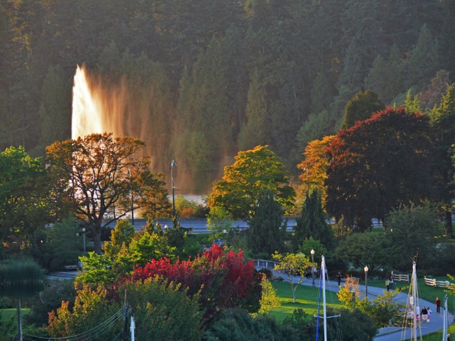 Previous ImageNext Image Lost Lagoon late evening sun on the lost lagoon and jubilee fountain – Stanley Park Vancouver