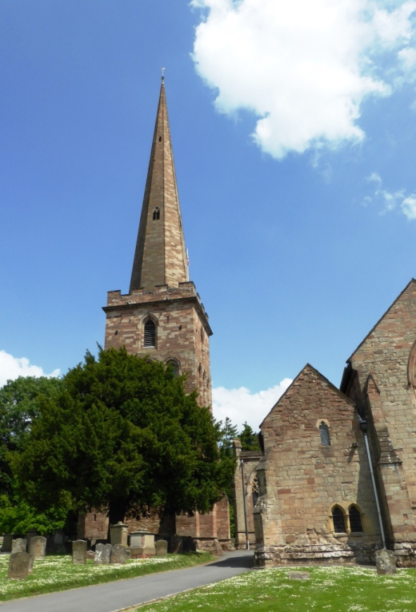The impressive tower was built around 1230, with the spire added in 1733. Unusually (for Herefordshire) the tower is not connected to the nave.