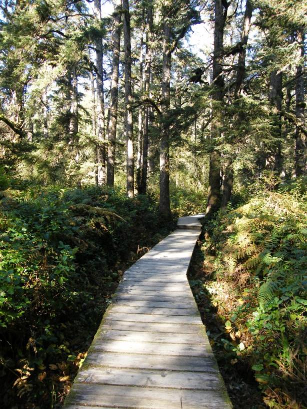 Schooner Trail is a boardwalk forest trail that ascends and descends stairs and ramps through a mature rainforest. Streams, nurse logs and tall trees dominate this trail that leads hikers to the wonderfully secluded Schooner Cove. On a low tide walk around the point to access miles more beach. This 1km trail (one way) is moderately difficult because of stairs.