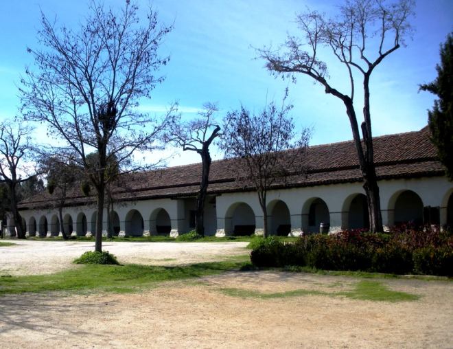 View across the plaza. The convento or cloister wing has nineteen arches and forms one side of the original Spanish plaza in the town.