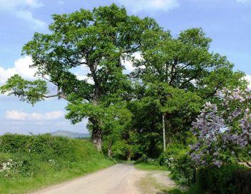 Lilac tree and hill of Clee