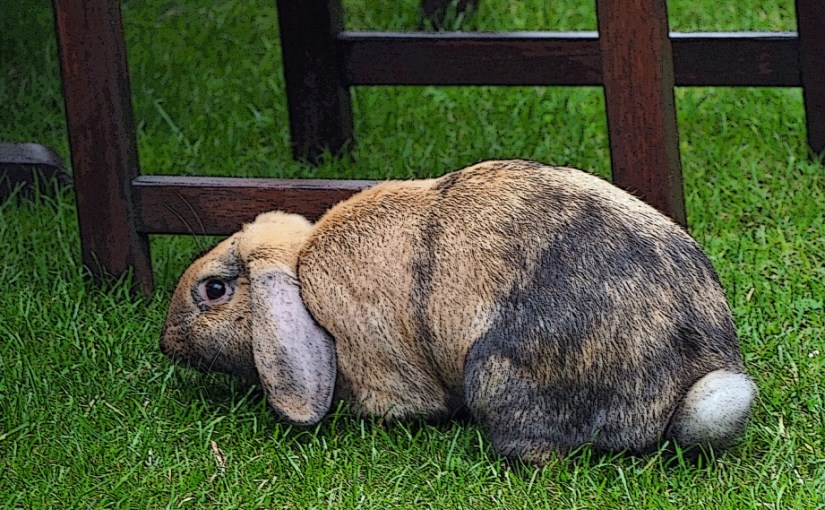 He looks in fine fettle. A friend of mine had a rabbit, very similar, called Albert. He lived partially in their house and had an old paddling pool in the kitchen (no water in it, obviously), where he went to feed and do his other business. He lived to a ripe old age for a rabbit, so I’m told and was almost obedient. Can rabbits understand us humans?