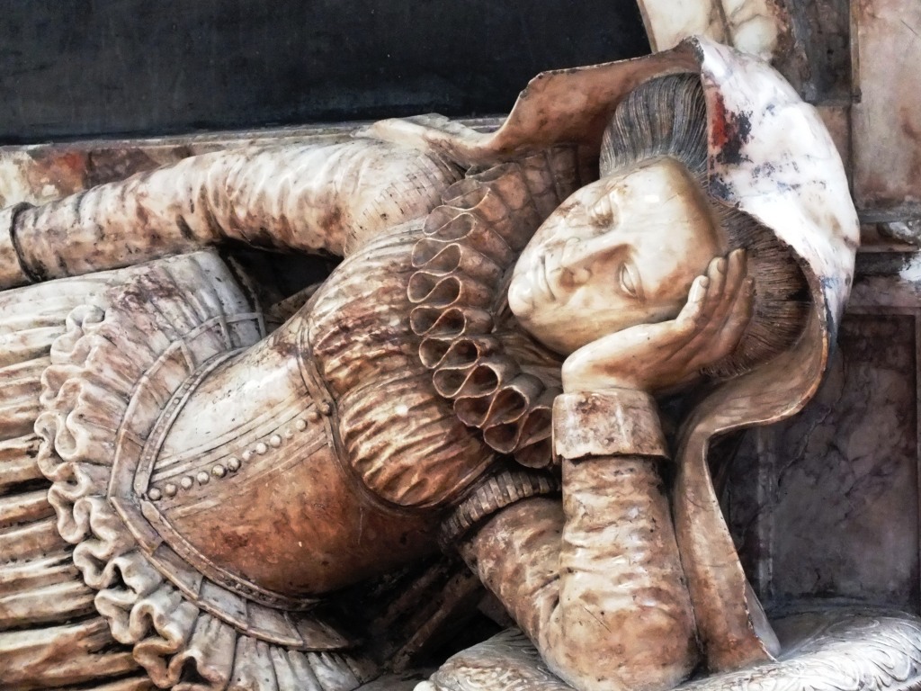 and St Catherine’s Chapel where there is a flag from the HMS Ludlow named after Ludlow in Shropshire and Ludlow in the USA. The monument here is unusual as the lady is carved on her side. The chapel was used for meetings by two of Ludlow’s craft guilds: the Weavers and the Shoemakers.