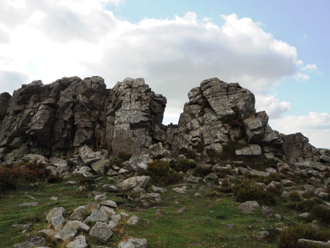 A slip or trip up here would not be good. To the left of the path are the Cranberry Rocks, to the right along the ridge lie the Manstone Rock, the highest point at 536m with a trig point on top showing distant points of interest including Corndon and Stapeley Hills (where Mitchells Fold can be found), the Devil’s Chair and furthest away, Shepherds Rock.
