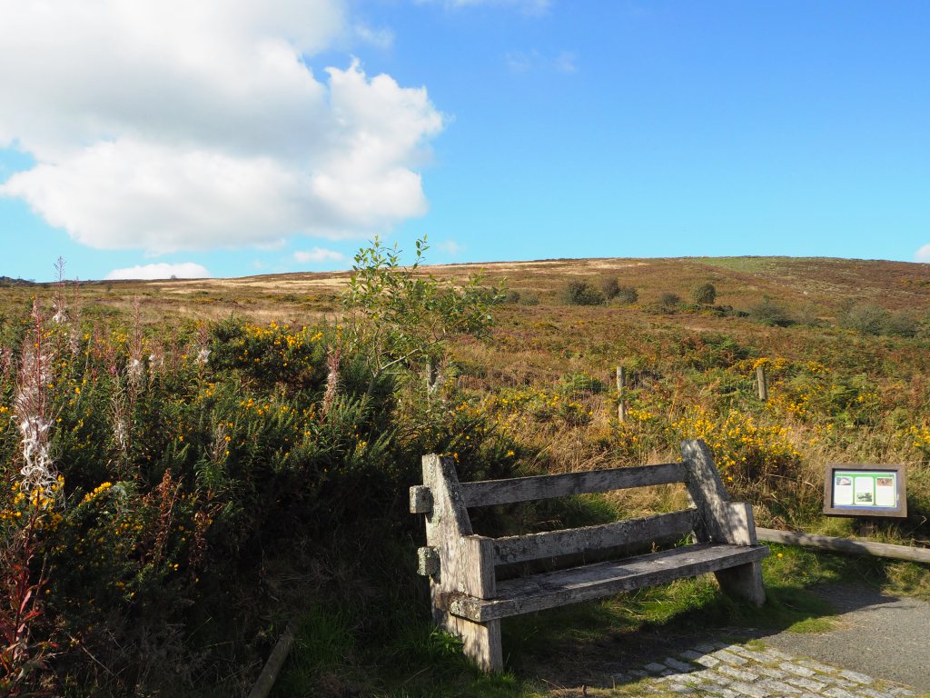 There are resting perches and a tapping rail as well as plenty of benches providing views over the area, although the actual quartzite tors are only just visible. There are no benches on top so make the most of these.