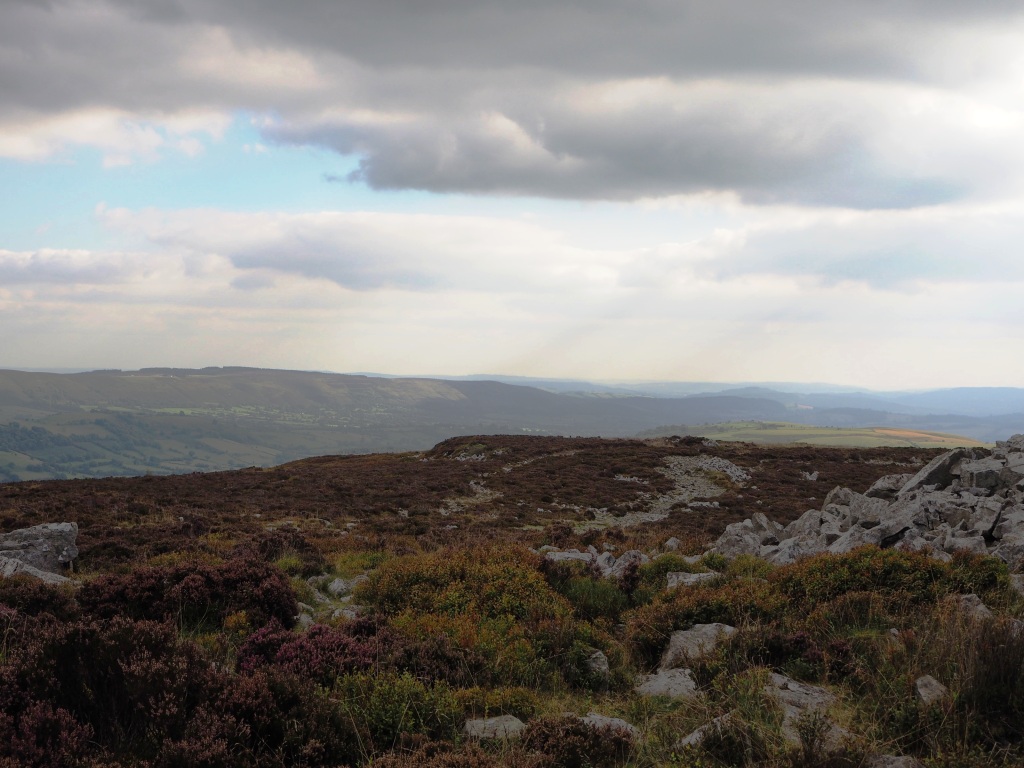 A slip or trip up here would not be good. To the left of the path are the Cranberry Rocks, to the right along the ridge lie the Manstone Rock, the highest point at 536m with a trig point on top showing distant points of interest including Corndon and Stapeley Hills (where Mitchells Fold can be found), the Devil’s Chair and furthest away, Shepherds Rock.