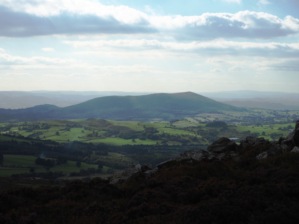 Reaching the top of the ridge you are greeted by the most spectacular landscape. The skyline is dominated by the rocky crags rising dramatically above the traditional hill farms. The views are breath-taking. No towns are visible from here though we could make out the pink towers of Buildwas in the Severn Gorge to the north east and the volcanic looking hump of the Wrekin. We could even make out the shape of Titterstone Clee to the south east, but it was too hazy by now to photograph. Of course there are no motorways, so no traffic noise to disturb the peace. A buzzard or two glided on the thermals in the far distance and even the sheep were quiet. There was a palpable sense of stillness.