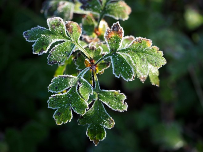 Rime iced leaves