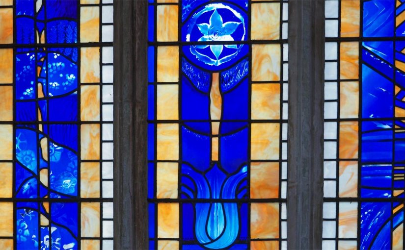 I love looking round old churches and this one looks particularly interesting. As others have remarked, the tiles are moving and unusual. However my top favourite image is the stained glass header. What a blue! Just beautiful.