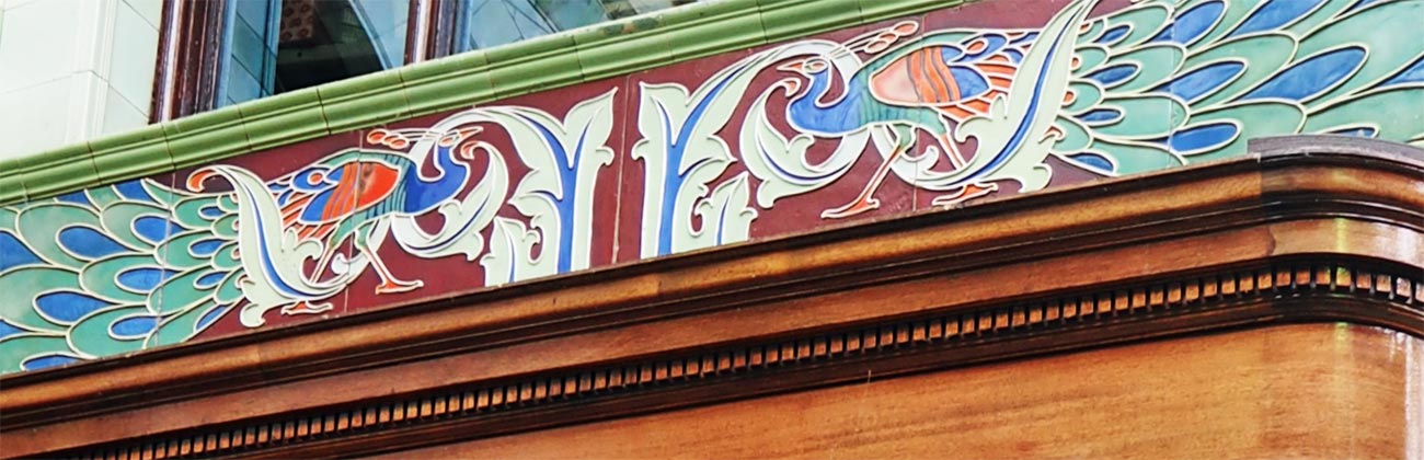 The peacock used in the Arcade frieze was a common feature. And stained glass was widely used.