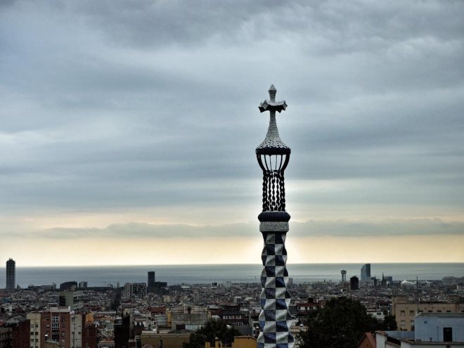 Trencardis (tile-shard mosaic) roof of the now bookshop