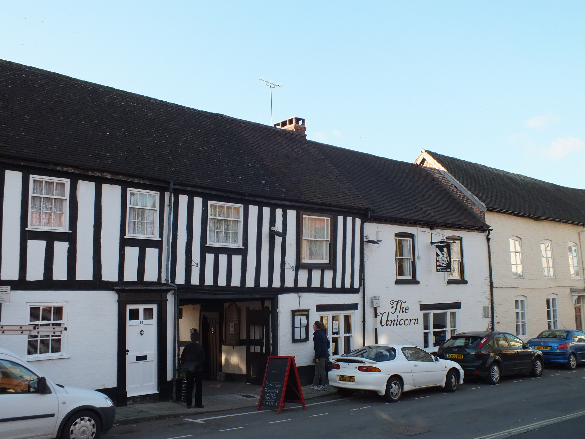 On reaching the main road we’ll turn left and then cross over onto Bromfield Road to make our way back into town. After crossing the road bridge alongside the pasture field turn right into Lower Corve Street where there are several interesting timber-framed buildings including the Unicorn public house where we can stop for lunch or a drink.