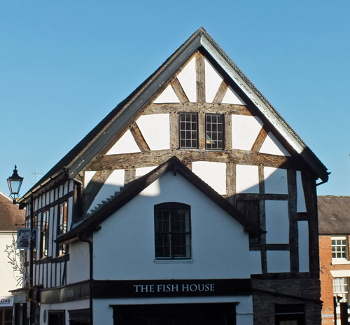 Now we are at the top of the hill, pause for breath before we head into the Bull Ring which was a Beast Market in the 17th century and used for cattle sales rather than bull-baiting. Here you find the Tolsey which was built in 1420 as a medieval toll-booth with a court room over an open ground floor. Tolls were collected on the ground floor for the market.