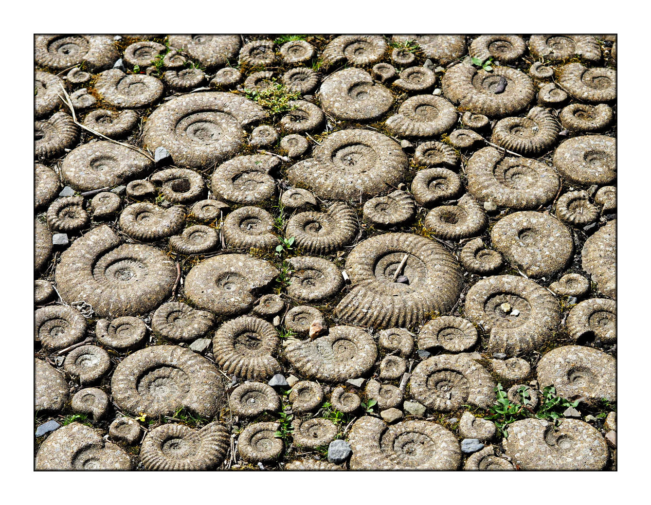 In contrast this image below using circles in various sizes (imitation ammonites) as paving stones certainly relies on the pattern for effect.