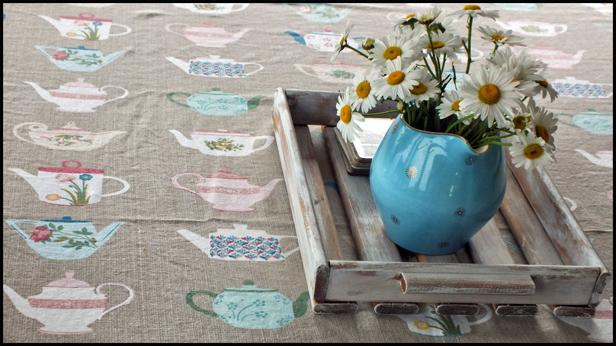 First one I am not so sure of. This pretty jug of daisies is the subject, but does the patterned tablecloth distract from it? Or is it that the composition is too tight? I cropped in a bit and tried to correct the camera distortion, but this probably hasn’t helped with the framing. That daisy is too near the top of the frame I feel.