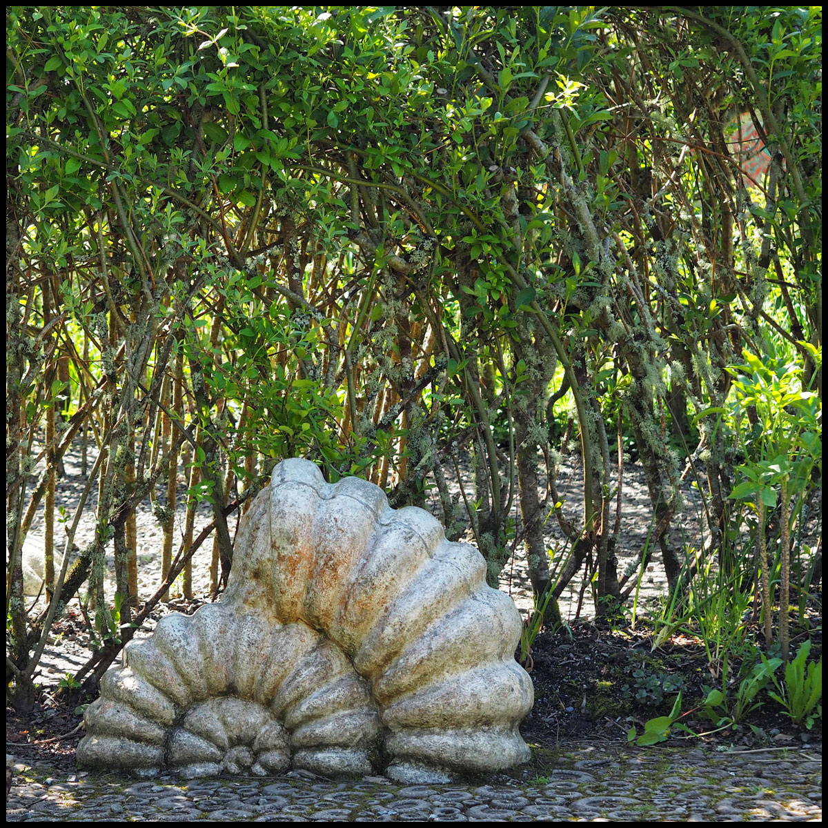 Next is this image of an Ammonite sculpture with a background of trees which appear to echo the curves of the sculpture. I’m happy with this organic background, but is it enough of a pattern?