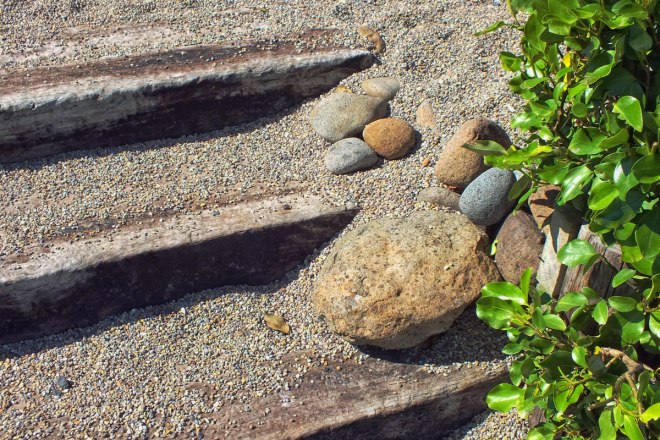 And below we have rough and smooth textures alongside each other. Rough stones and wood with smooth cobbles and leaves.