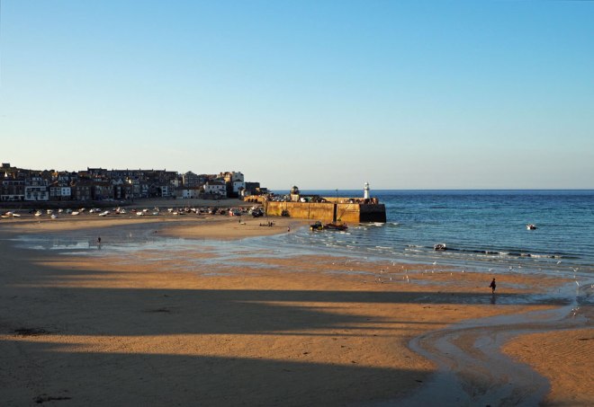 (6) The fingers of long shadows on the harbour beach in St Ives on a summer’s evening reach out for this tiny figure watching the tide come in.