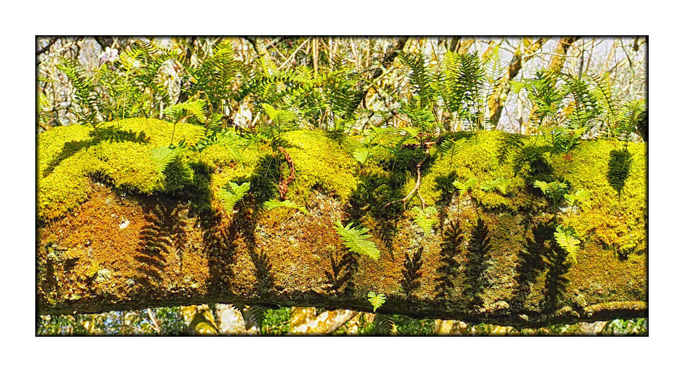 (5) And the shadow patterns of these common polypodium ferns growing on the limb of an ancient Magnolia tree appear to be growing from the base.
