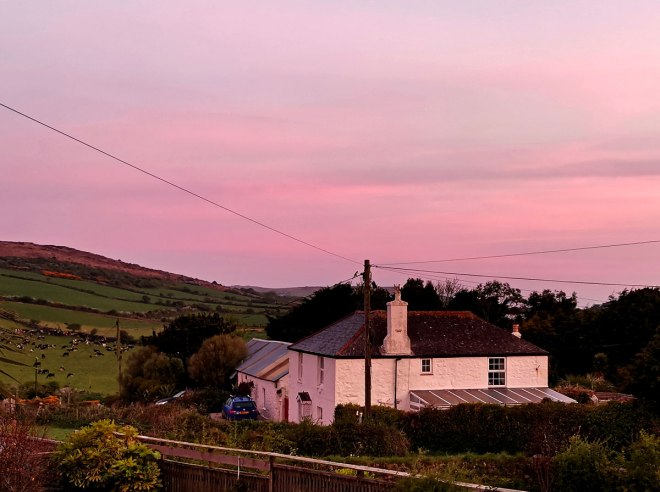 (b) Pink light – dawn facing west – April 6 am