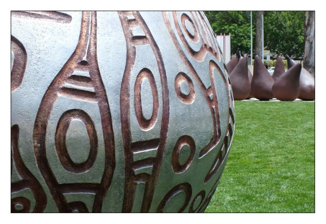 Pear—version number 2 by George Baldessin, placed like ripe fallen fruit in the forecourt of the National Gallery of Australia, displays the artist’s abiding interest in the theatrical potential of art. Source: National Gallery of Australia]