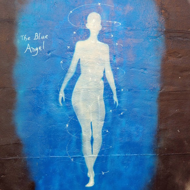 This Blue Angel seems beneficent, unlike the one played by Marlene Dietrich in the 1930 movie (https://en.wikipedia.org/wiki/The_Blue_Angel).