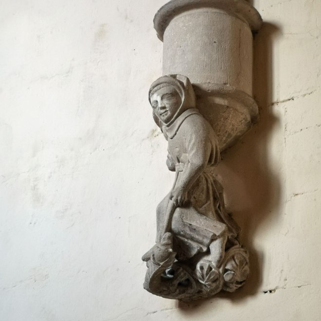 corbel of the dragon-slaying monk in the chapter house stair.