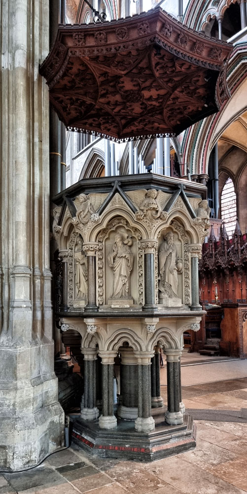 Previous ImageNext Image SC (10) Sculpted stone Pulpit – each face depicts an apostle or other biblical figure