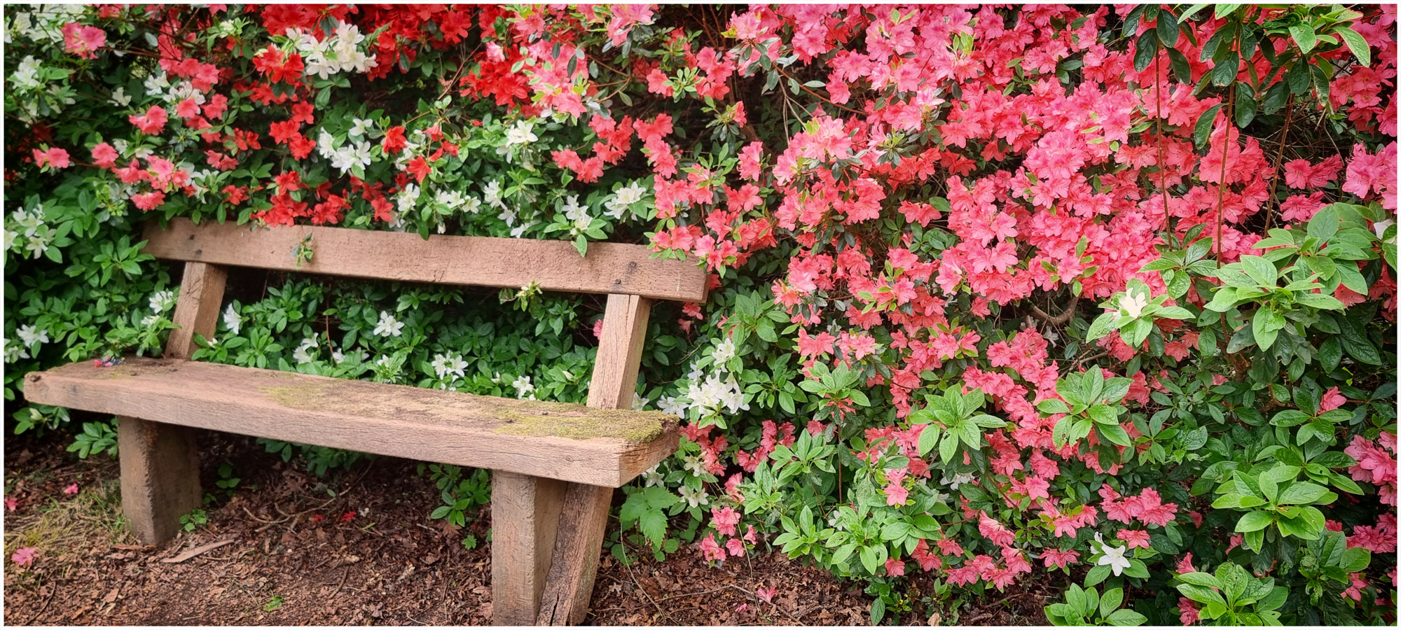 A bench among the Azaleas in Isabella’s Plantation, Richmond Park, Surrey.