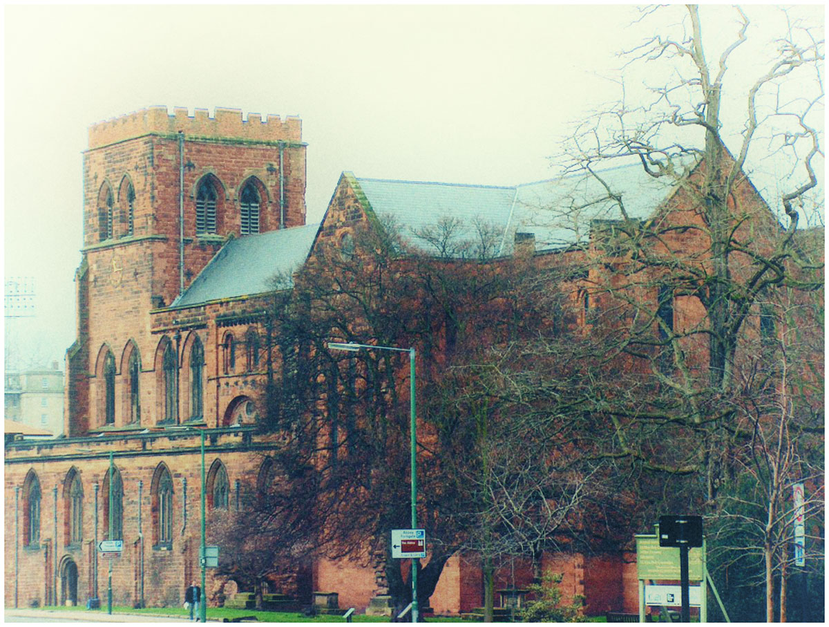 ‘The Abbey’ is actually Shrewsbury’s Abbey Church: not much else of the Abbey survived the Dissolution in 1540 and then Telford’s roadbuilding in 1836. Cadfael is the fictional monk/detective whose home was the Abbey around 1135-45, according to the novels by ‘Ellis Peters’ (Edith Pargeter).