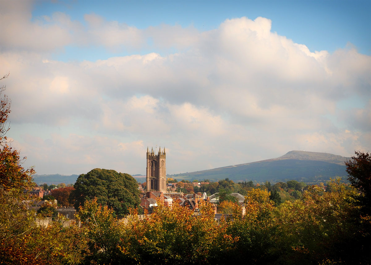The ashes of A.E. Housman are indeed buried in the grounds of St. Laurence’s church, Ludlow, which is not in fact a cathedral, but is often referred to as ‘the Cathedral of the Marches’. It is indeed a church with many fine features and its tower is visible from a considerable distance (and plays a major part in Housman’s poem ‘The Recruit’).