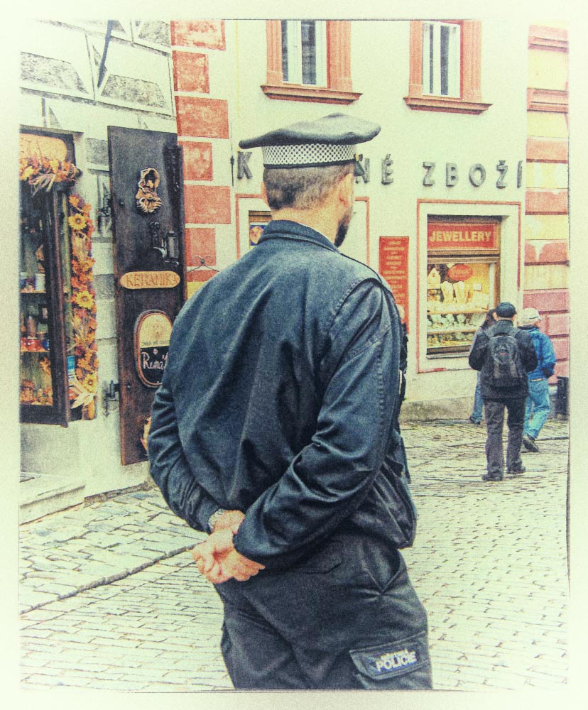 A day trip from Prague in a cold October took me to Český Krumlov a town dominated by a large castle. After visiting the castle and having a typical Czech lunch in a restaurant in the square we were left to our own devices for a couple of hours. I immediately left the rest of the group and went wandering around the streets seeking interesting things to photograph. I was not disappointed. With its cobbled streets, quirky shops and architecture, the town is a tourist’s delight. As we departed in the late afternoon snow flakes began to fall…