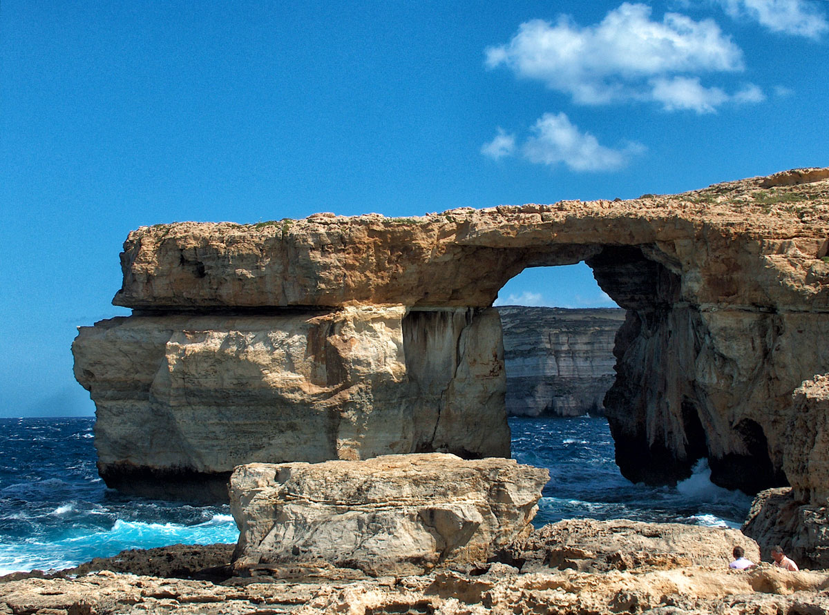 Our first stop was at Dwejra a small location on the West coast of the island of Gozo, known for its “inland sea” (small bay surrounded by high cliffs) and as the site where the Azure Window (naturally formed rock arch on the coast) could be found – we were lucky to see this, it collapsed during bad weather in March 2017.