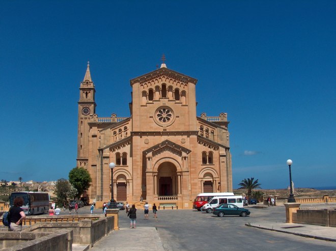 A much more imposing church is the Ta’ Pinu Basilica and Shrine (The Shrine of the Blessed Virgin of Ta’ Pinu) close to Għarb, which was a centre of pilgrimage. The chapel remains in tact behind the altar and still contains the painting of the Assumption to Heaven of Our Lady from which the voice is said to have spoken to Karmni Grima. There is an chapel inside with some very unusual offerings and messages from people who were blessed by a miracle,