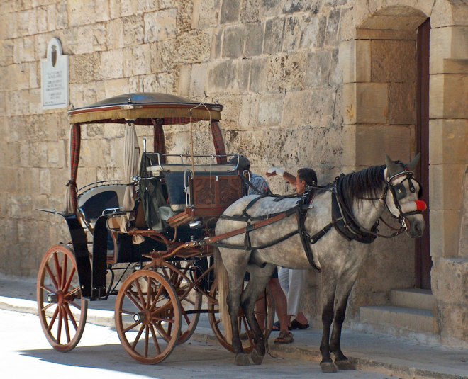 You’ll hear the sound of horses hooves as horse-drawn carriages (karozzin) are used to take tourists around the city.