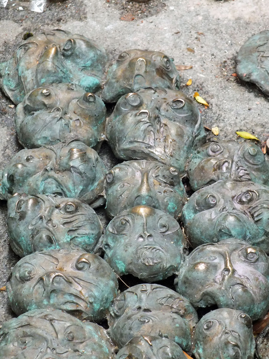 “Locksmith Street,” is a narrow alley in the medieval old town in the Slovenian capital city. The entrance is marked by a key. In the middle of the cobblestoned street is a gully that appears to be flowing with hundreds of strange little faces. Some happy, some sad, some rather strangely distorted. There are 700 of these bronze faces running through the centre of the alley, culminating in a drinking fountain and a couple other odd sculptures, namely a bronze hand and a skeleton trapped in a cage.