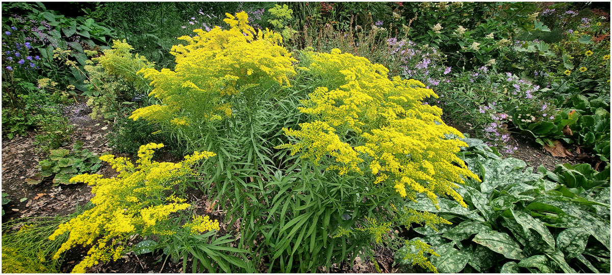 They use the boat to clear the pondsThalia dealbata – the architectural leaves remain but the flower stems are removed as the flowers trap pollinators.Goldenrods (Solidago) are herbaceous perennials known for their bright yellow flower plumes that typically bloom in late summer through early autumn.