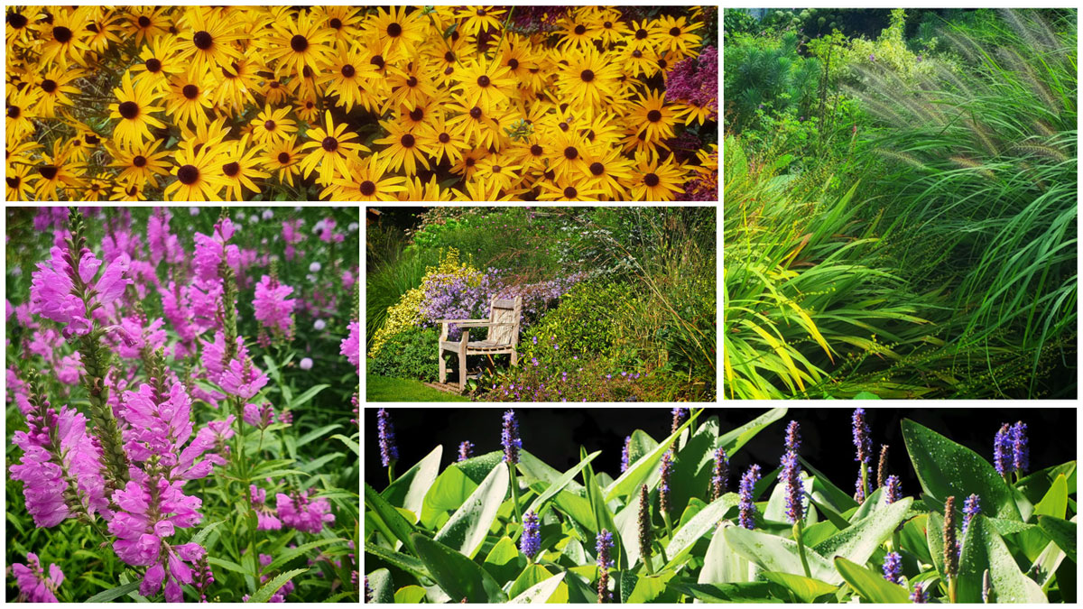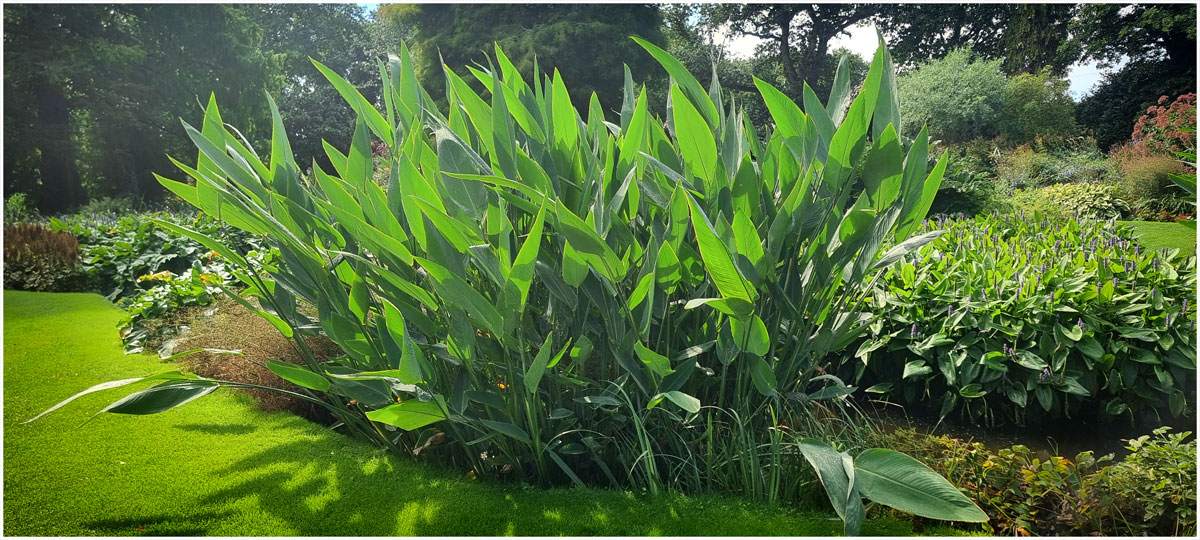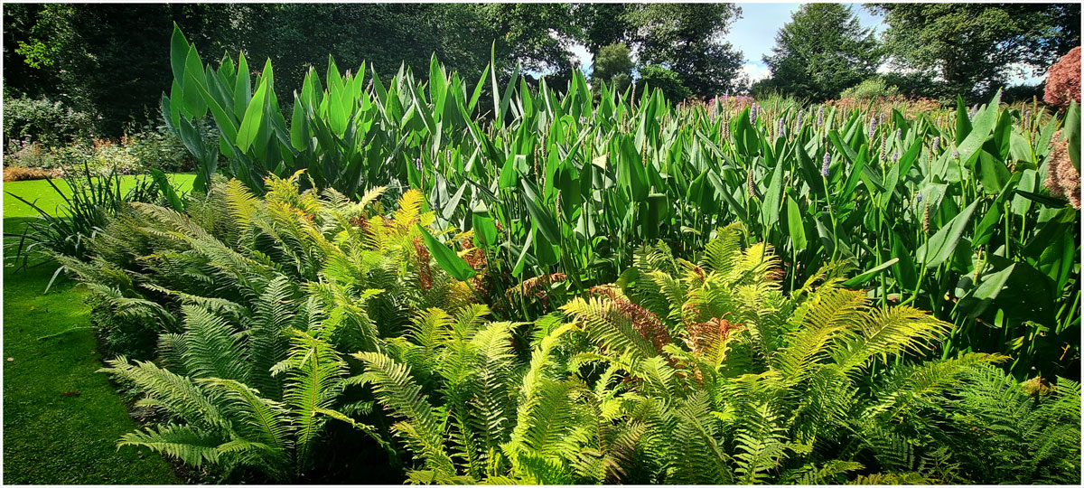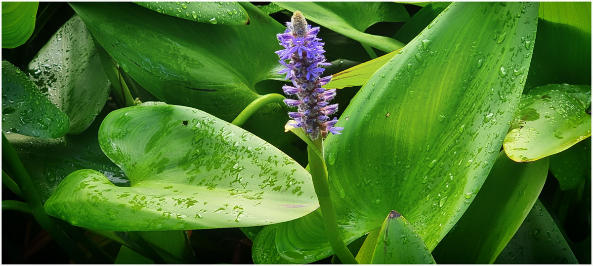 Although my garden is on the wet side these plants would be far too large.One of the pondsPickerel Weed (Pontederia cordata), also known as Giant Pickerel Weed