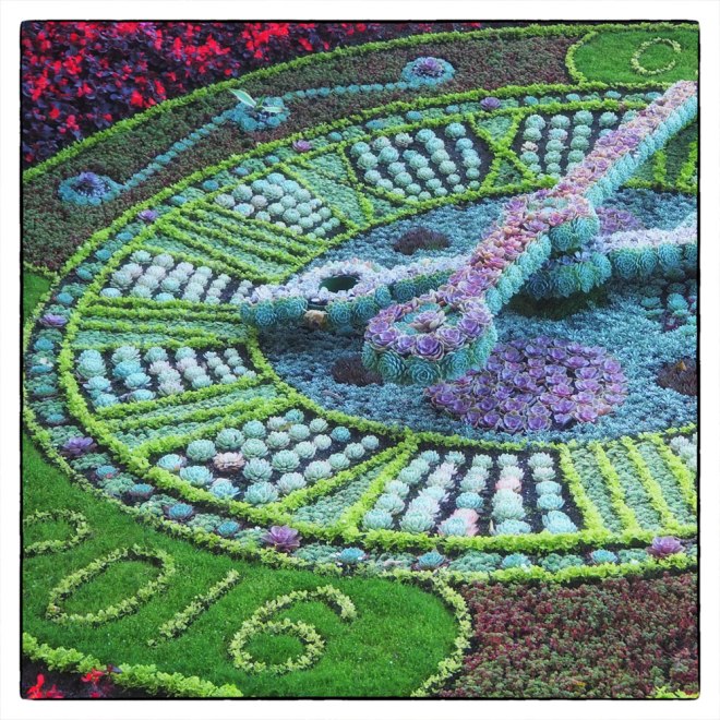 But the one seen here is in the Princes Street Gardens in Edinburgh taken in 2016. Commissioned in 1903, it was the first of its kind in the world. Clock hands, numbers and the surrounding display comprise of growing, photosynthesising life. In 1973, an electric motor was installed to keep the clock hands moving. Before then the clock’s mechanism had to be wound daily. Each year a new display is planted in West Princes Street Gardens along the lines of a topical theme. Plants vary each year but some of the more commonly used varieties include Lobelia, Pyrethrum, Golden Moss and succulents such as Echeveria and Sedum.