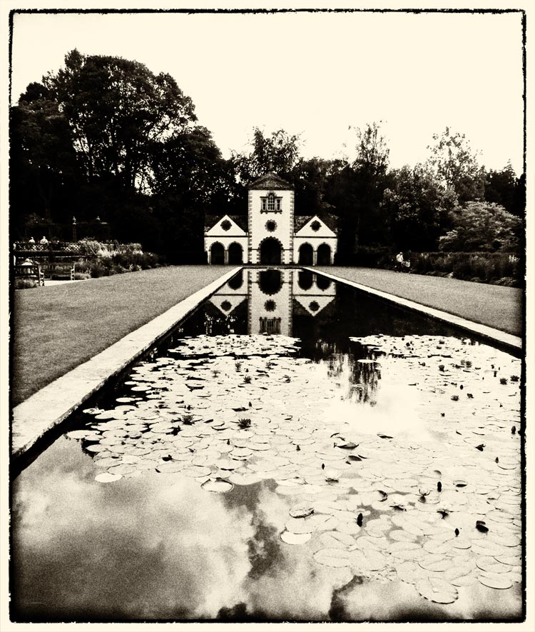 Before being re-erected at Bodnant in the 1930’s, the building was originally put together in 1730 as a picnic house or shooting lodge, or it is thought it may have been used as a garden house. Later, the building was used as a factory for making dressmaking pins with two furnaces for that purpose inside the building.