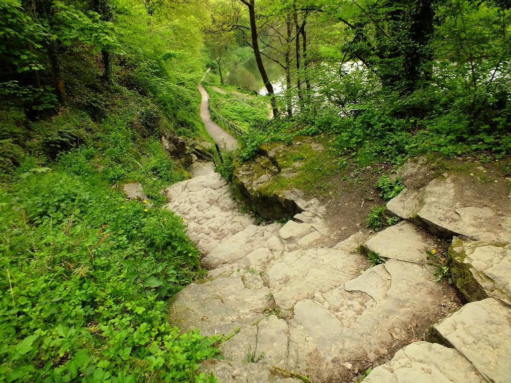 From here you can continue on the flat and across to Whitcliffe Common, and through the woodland, but we have done part of that walk before. Today I’m going down more uneven steps onto the path beside the Teme.