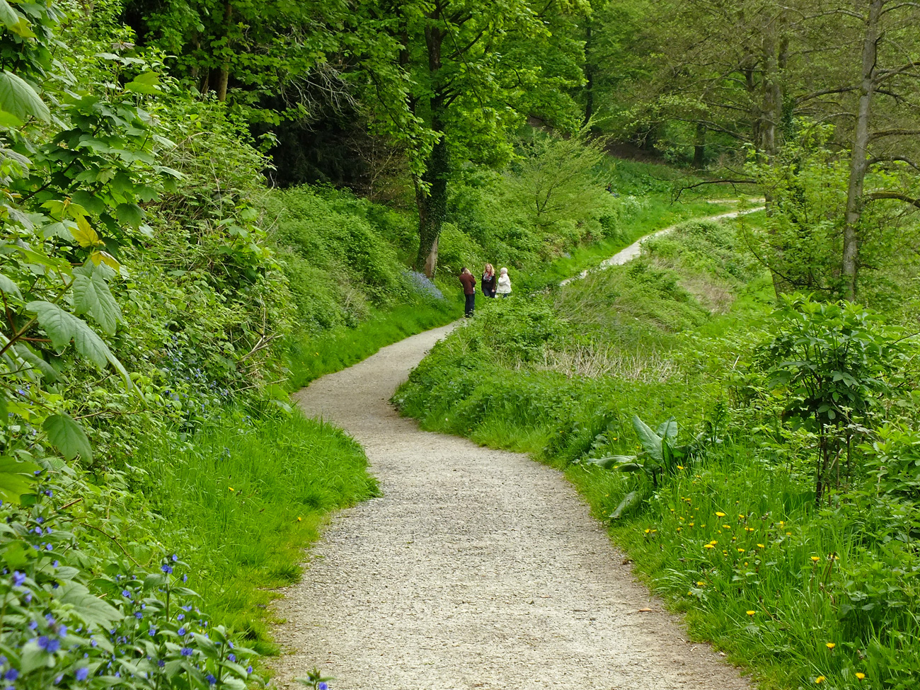 The path curves around past clumps of forget-me-nots and alkanet (both members of the Boraginacae tribe) and patches of wild garlic amongst nettles and dock leaves and blackberry brambles.