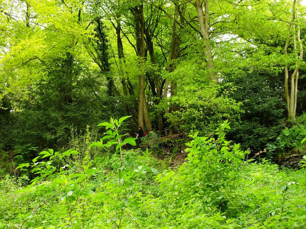 Above us is another path leading up to the common through the broadleaf woodland. The foliage is so lush at the moment it is difficult to see anyone. But look carefully.