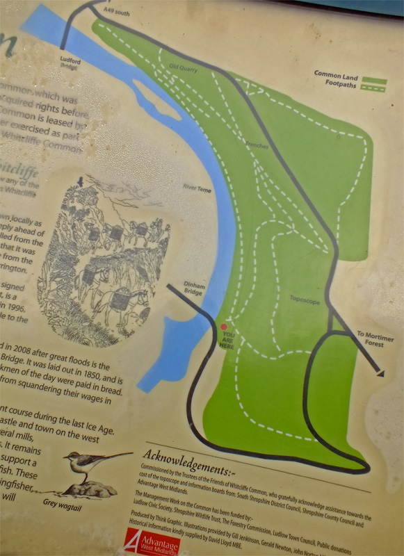 The Walk:Source of information from the Ludlow Civic Society blue plaque (Dinham Gate) and the information board commissioned by the Trustees of the Friends of Whitcliffe Common (Whitcliffe Common)