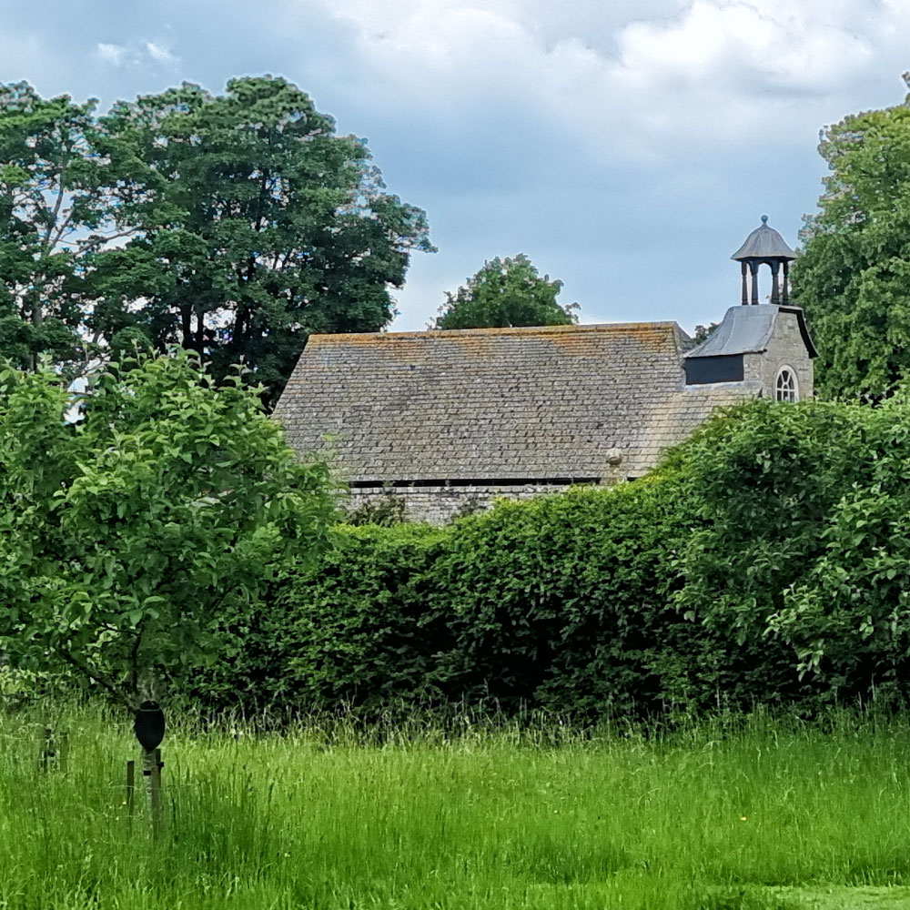 Through the arch there is a lake on the left, a cricket pitch on the right. You are in a valley with not a single house in view, just trees and sheep and horses and glimpses of the lake.