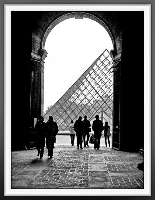 I will end with one of my favourite ‘contre-jour’ photos of the entrance into the courtyard of the Louvre, Paris, France. The figures closer to the light source are more defined, whilst the figures closer to the camera are more solid shapes.