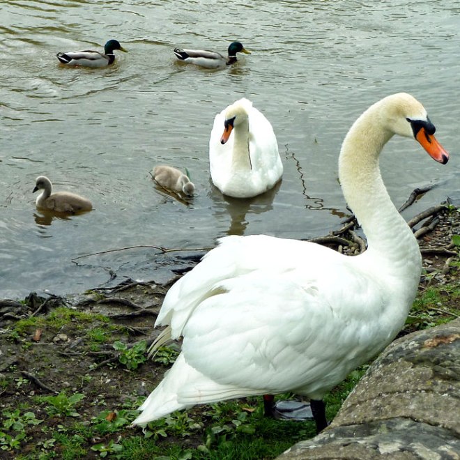 So I shall stick with this lovely family of swans, daddy (the Cob in the foreground) making sure that nothing comes close to his little family.