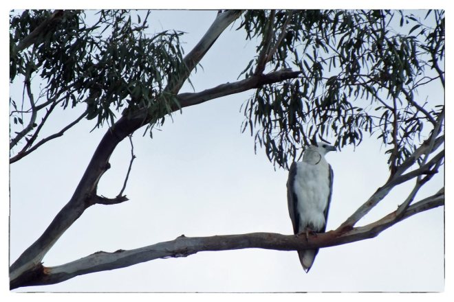 A White-bellied Fish Eagle in Wagonga, NSW, Australia. A very good blogging friend kindly took me on a river cruise here and on the way back we saw this beauty in the eucalyptus tree surveying his territory.