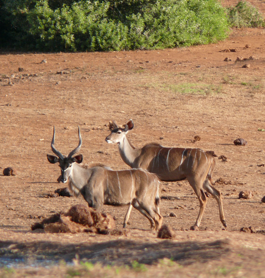 That evening we sat outside our rondavel with a bottle of good South African red and watched the kudu and warthogs around the Nyati Water Hole for a couple of hours before going across to the restaurant for a meal.